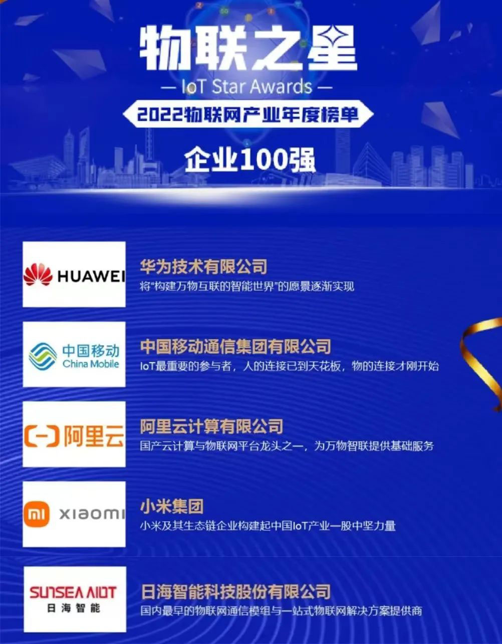 “物聯(lián)之星”物聯(lián)網(wǎng)行業(yè)年度榜單作為物聯(lián)網(wǎng)行業(yè)超高權威性、專業(yè)性的評選活動一直備受矚目,被譽為中國物聯(lián)網(wǎng)行業(yè)的奧斯卡獎。近日,一年一度的2022“物聯(lián)之星”物聯(lián)網(wǎng)行業(yè)年度榜單的結果重磅來襲,zoty中欧体育官方网站公司智能不負眾望,榮登2022年度“物聯(lián)之星”中國物聯(lián)網(wǎng)企業(yè)100強!
