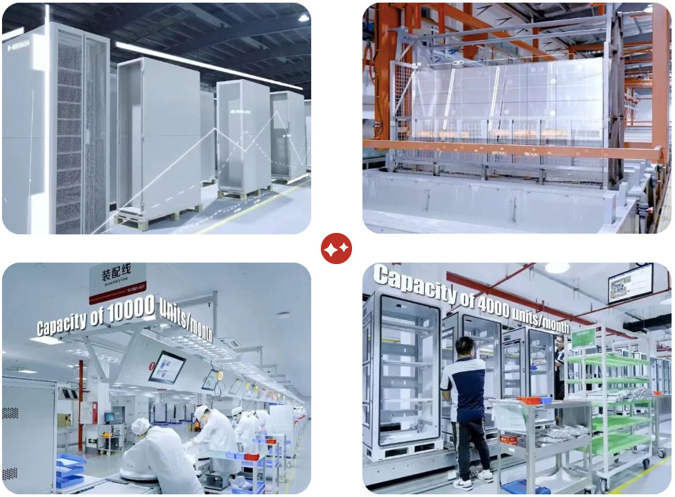 集成車間引進(jìn)了戶外柜生產(chǎn)線,產(chǎn)能平均高達(dá)4000臺/月)。采用電子看板,可實(shí)時顯示工序SOP,設(shè)有淋水防護(hù)測試、性能測試,掃碼系統(tǒng),并單獨(dú)設(shè)立了嵌入式電源ATE測試工位,可實(shí)現(xiàn)電源的自動檢測和數(shù)據(jù)記錄。同時引進(jìn)了微站電池生產(chǎn)線,產(chǎn)能高達(dá)10000臺/月),采用電子看板,設(shè)有耐壓測試、氣密測試,并單獨(dú)設(shè)立了ATE測試、充放電老化測試工位,進(jìn)行嚴(yán)格、專業(yè)的安全、性能及可靠性測試。
